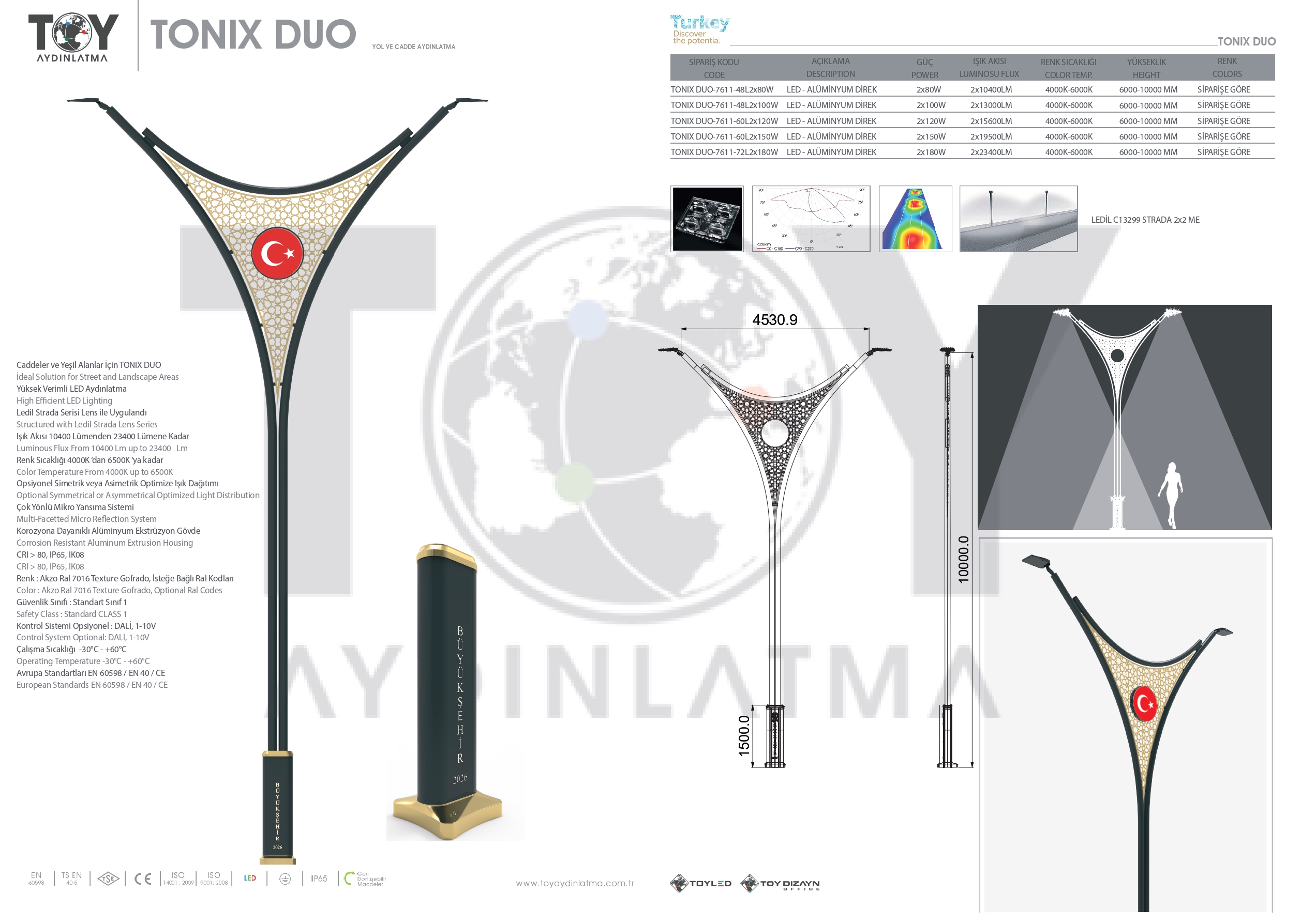 | TONIX DUO-7611-48L2X80W | LED - ALÜMİNYUM DİREK | 2X80 W | 2X10400 LM | 4000-6000 K | 6000-10000 MM | Siparişe Göre |