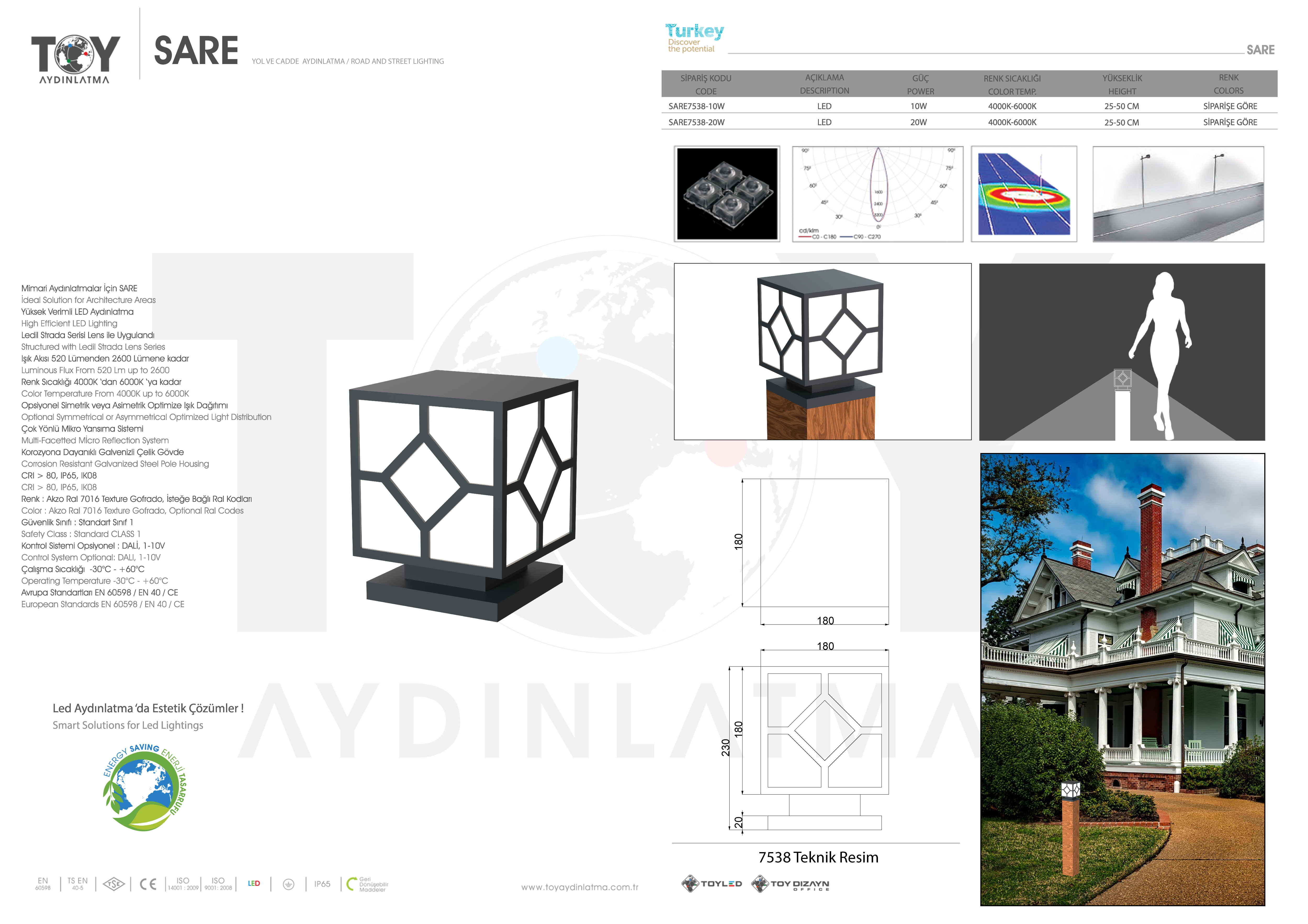 | SARE7538-20W | LED | 20 W | 4000K-6000K | 25-50 CM | SİPARİŞE GÖRE |