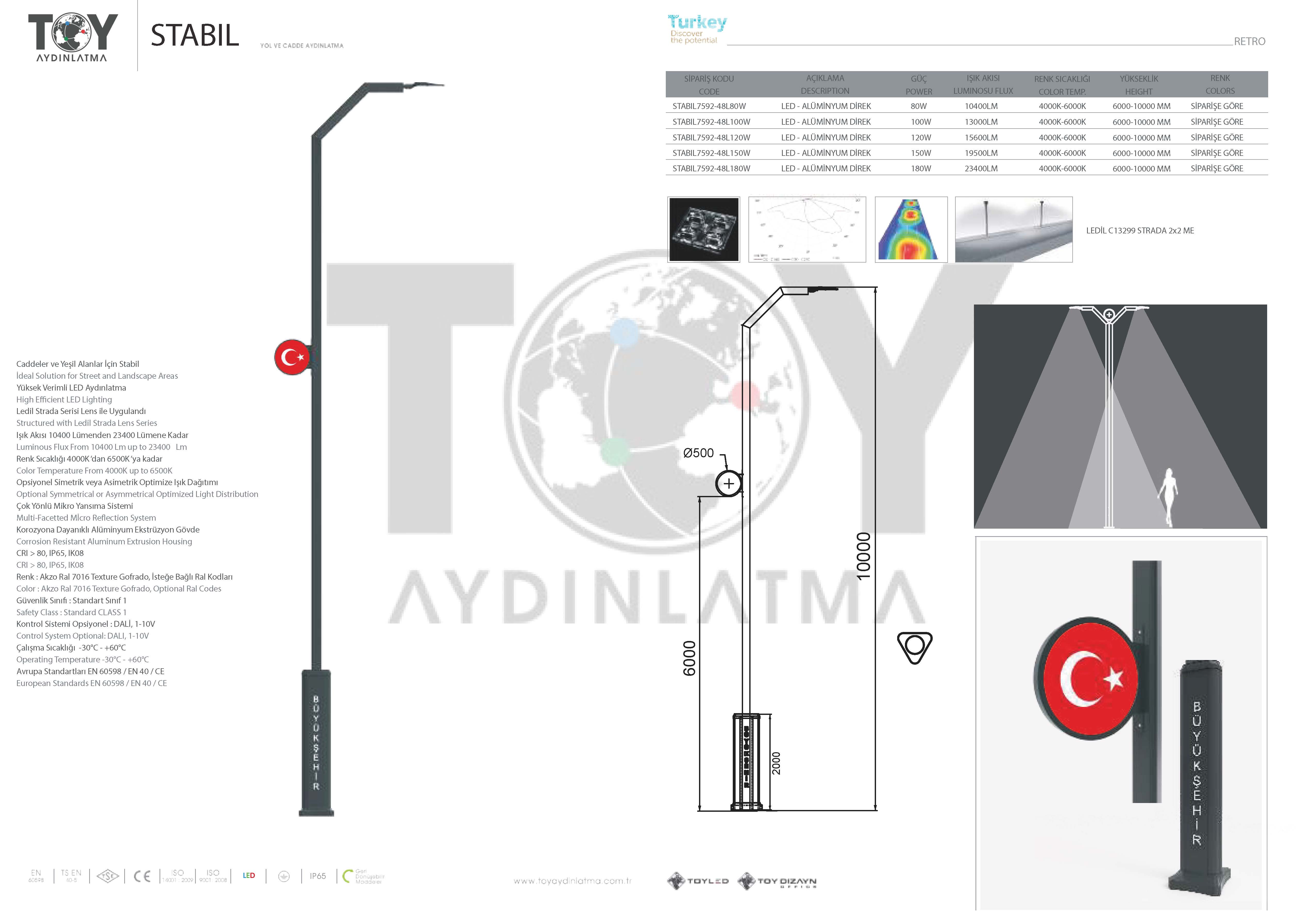 | STABIL7592-48L80W | LED - ALÜMİNYUM DİREK | 80 W | 10400 LM | 4000-6000 K | 6000-10000 MM | Siparişe Göre |